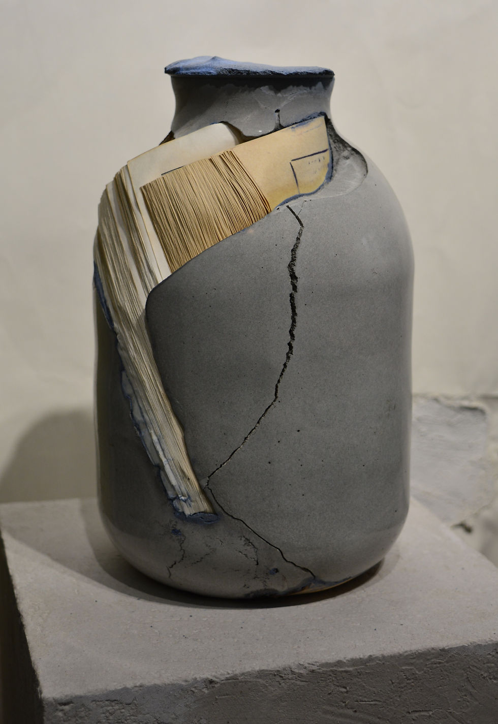 In this series, textual language loses its primary communicative function through the process of concreting and becomes material for a visual, abstract language. As a result, books once intended for reading are transformed into objects for contemplation. To realize this concept, I used randomly found and discarded books from a local library — books that had been decommissioned and written off as wastepaper.